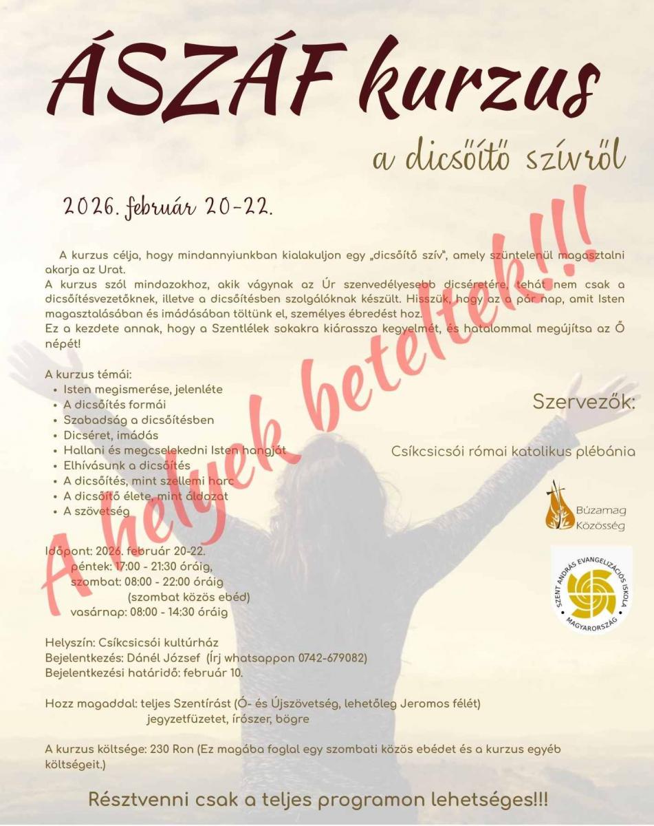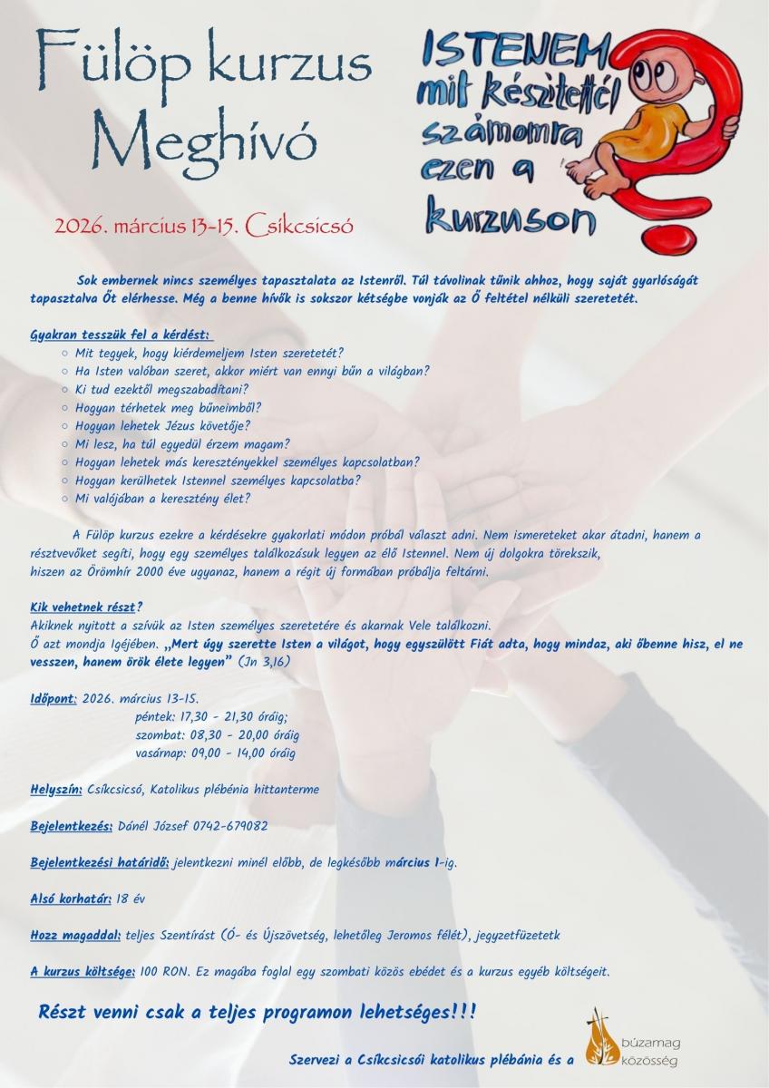 Isten atyai szíve kurzus 2026. február 4-8. Marosvásárhely